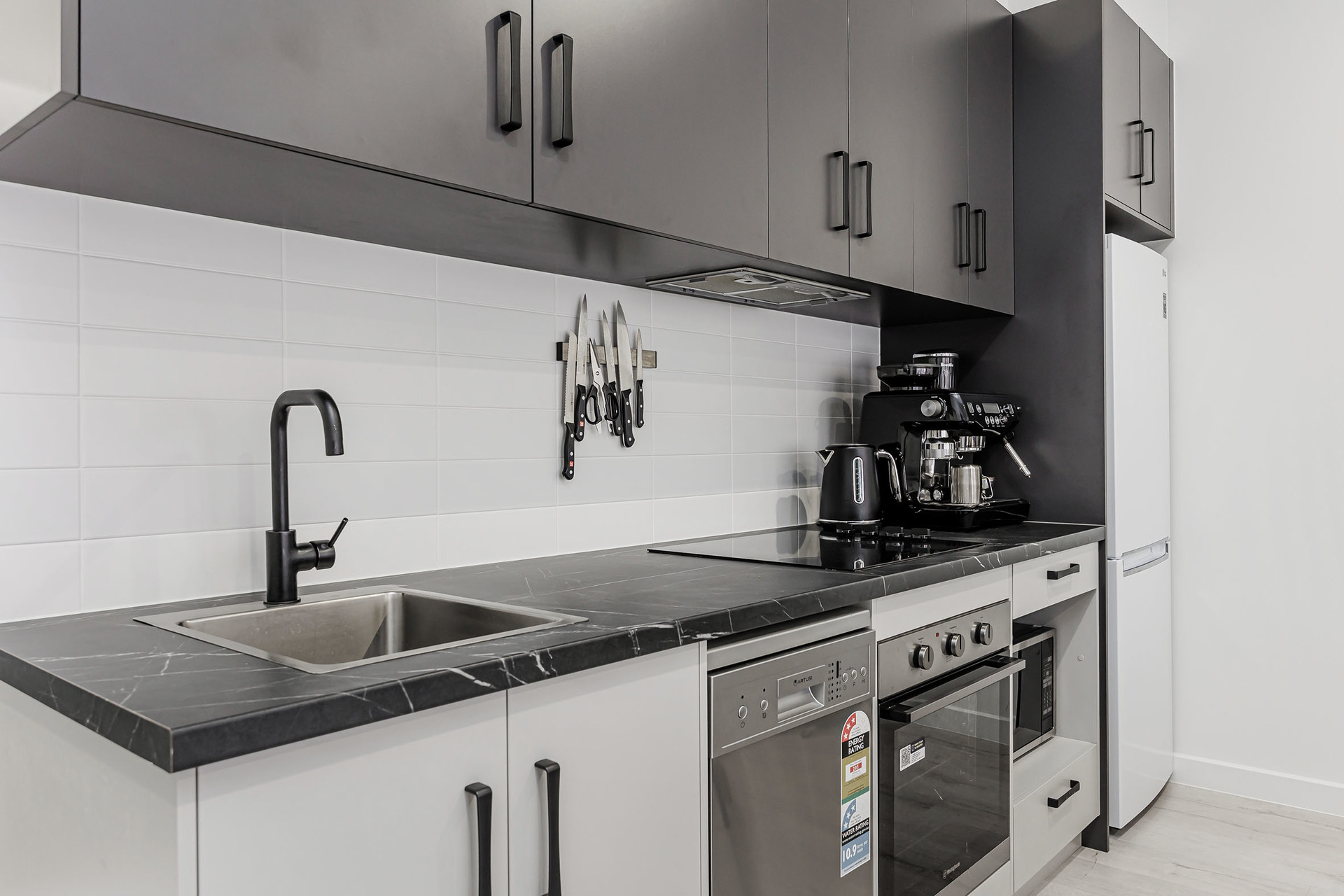 Contemporary kitchen with quality appliances, stone benchtops & ample storage