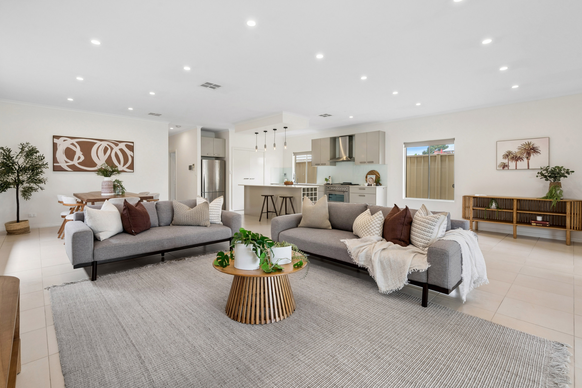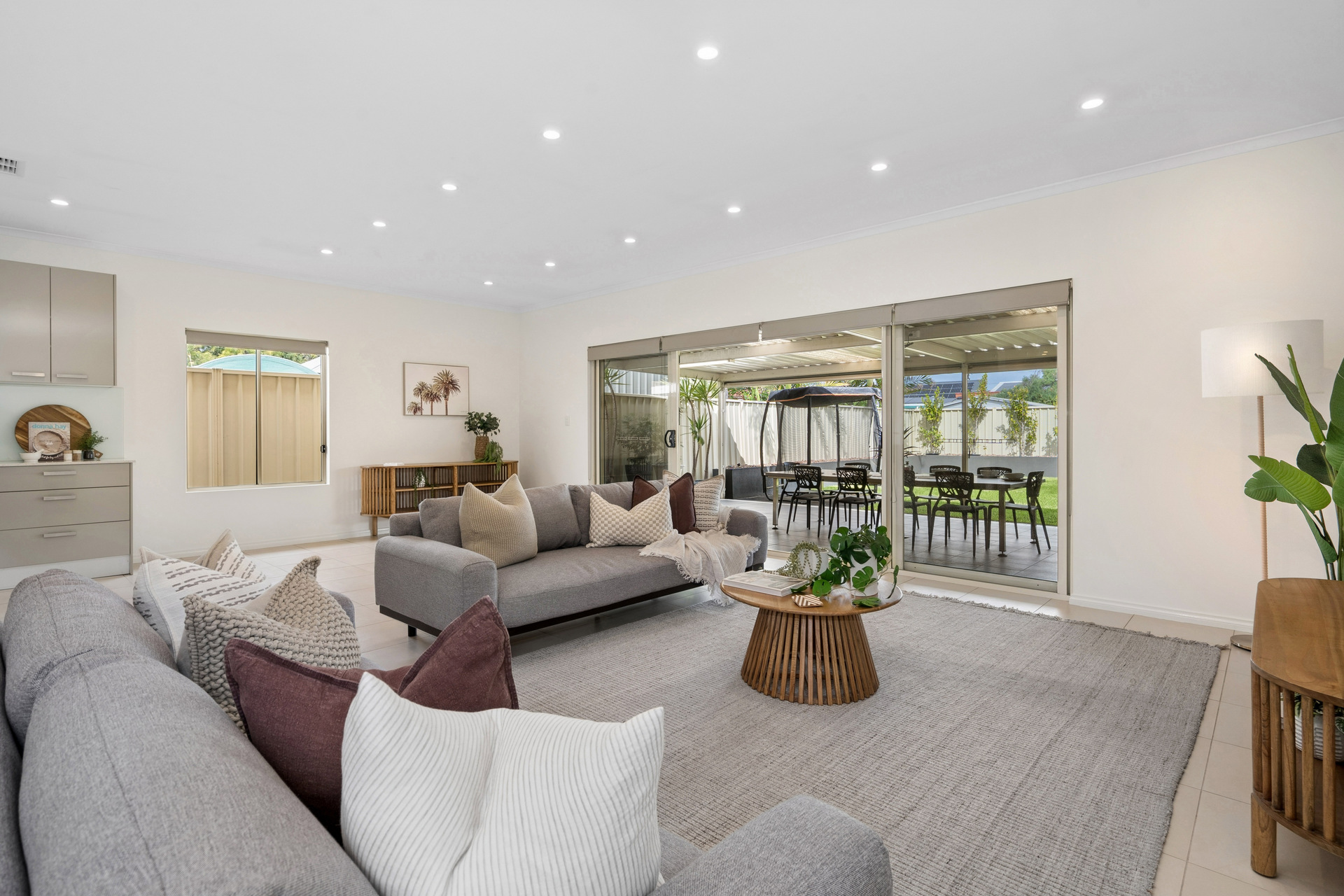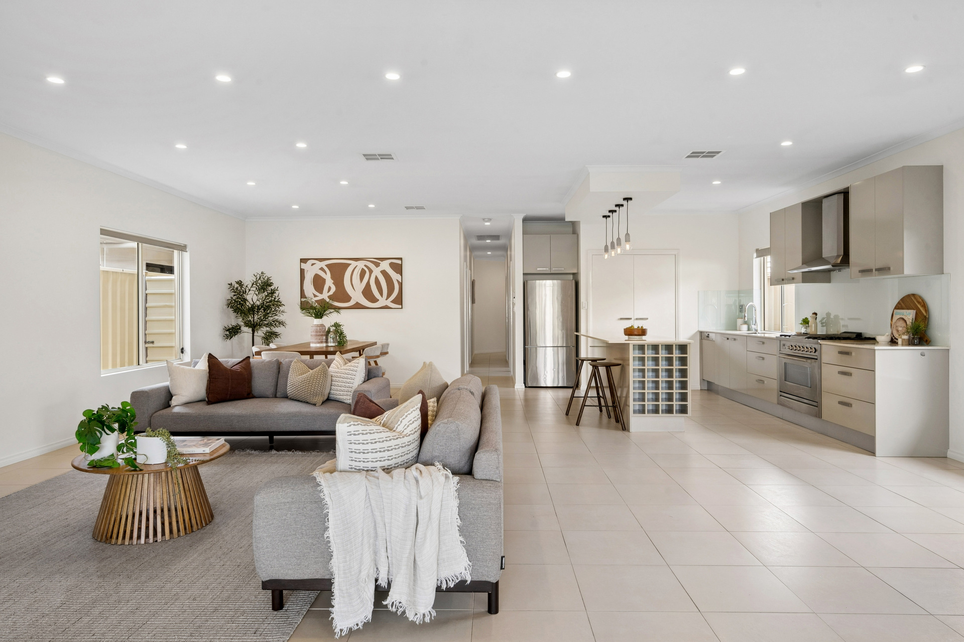 Designed for practical modern living, the home features a generous open-plan lounge, dining and living area filled with natural light, alongside a well-appointed kitchen complete with extensive pantry storage and ample bench space.