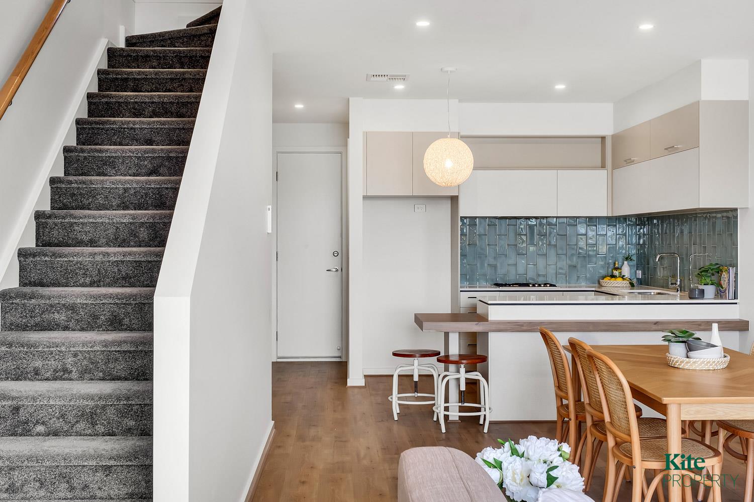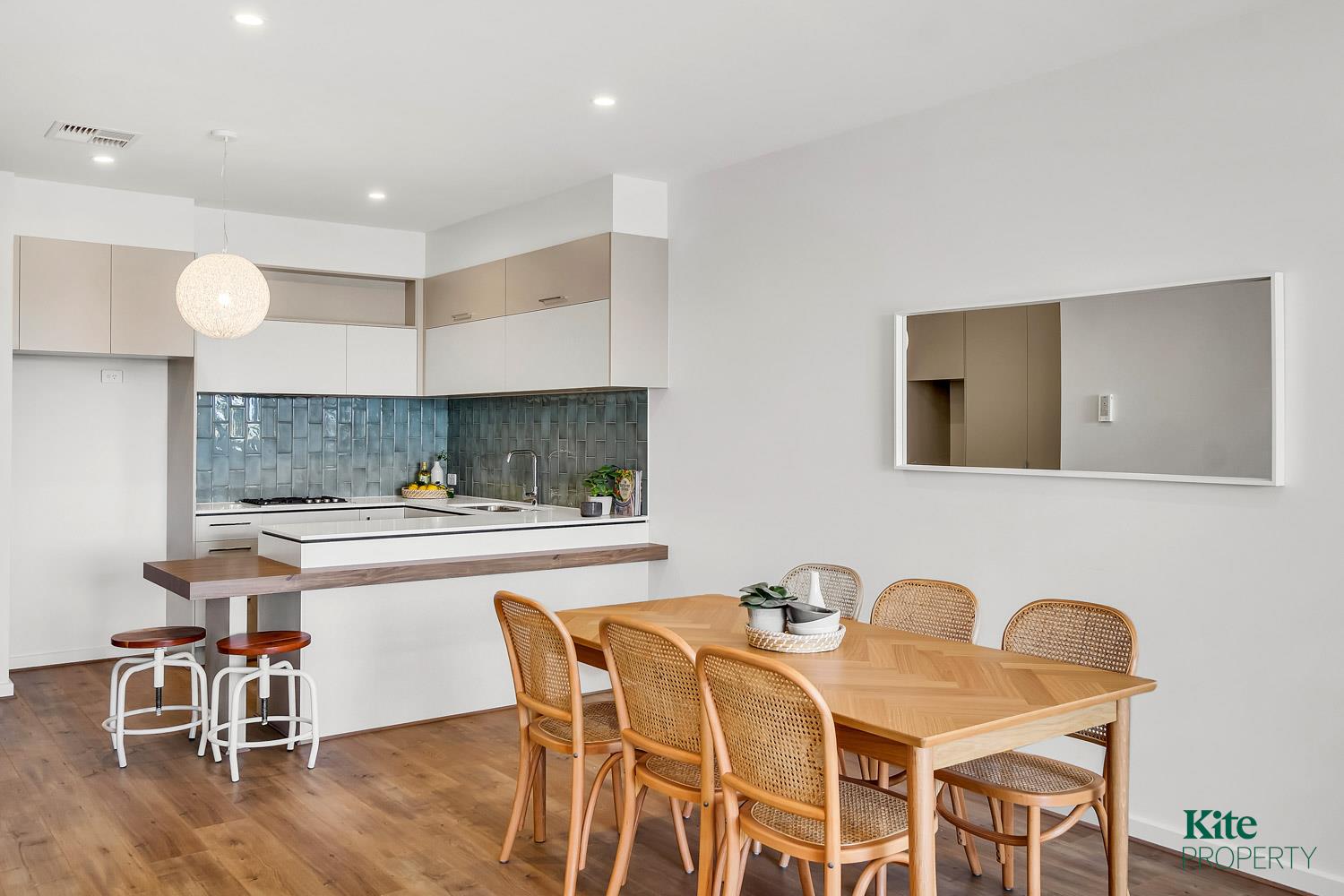 * Stunning designer kitchen with built-in dining area and feature lighting