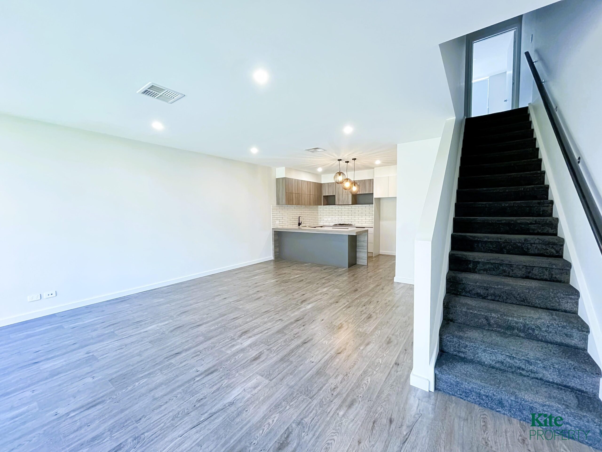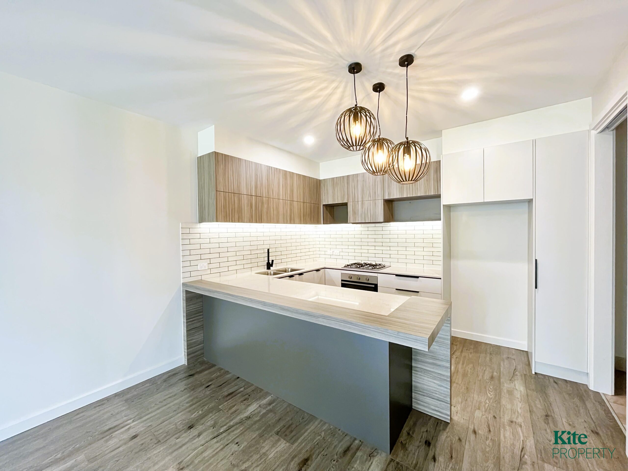 – Stunning designer open plan kitchen with, dishwasher, gas appliances, built in dining area and feature lighting