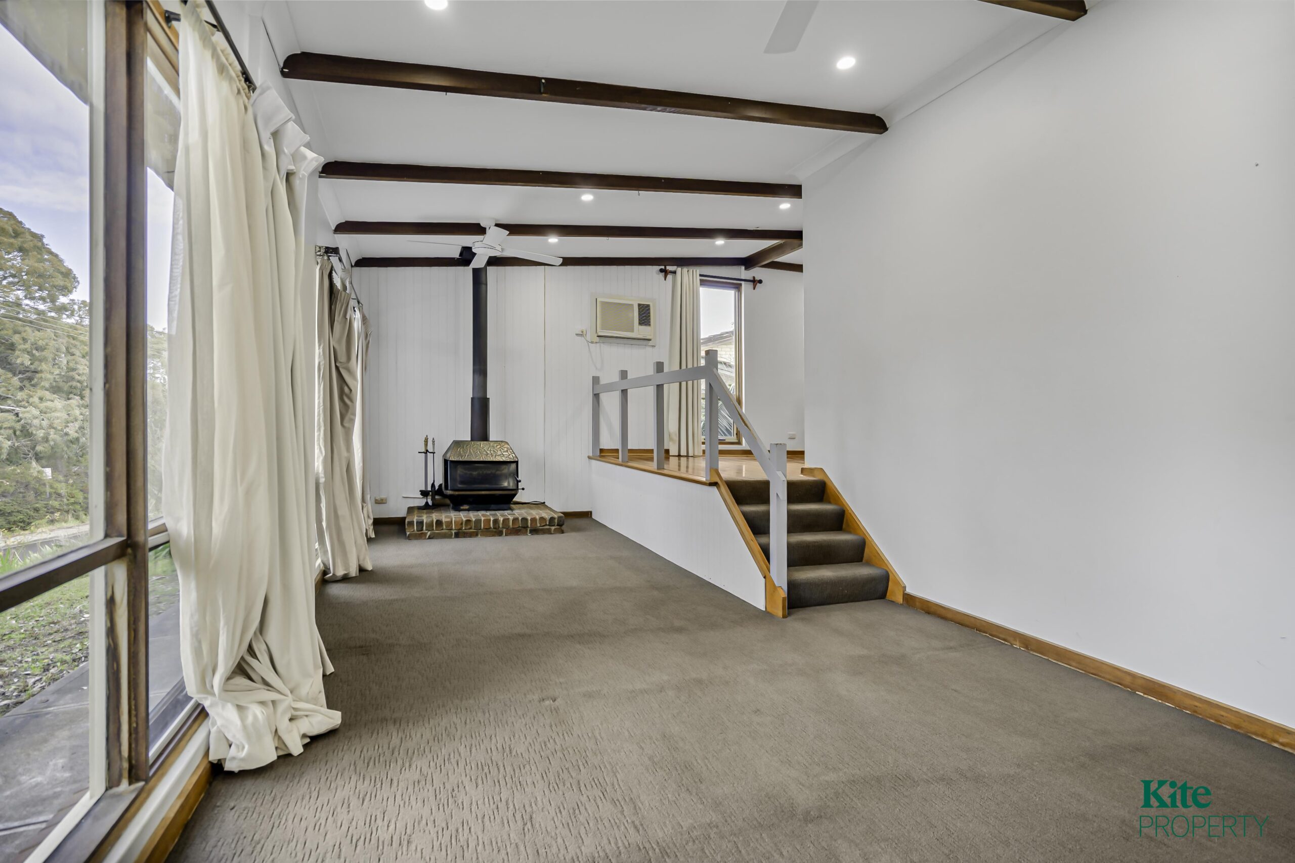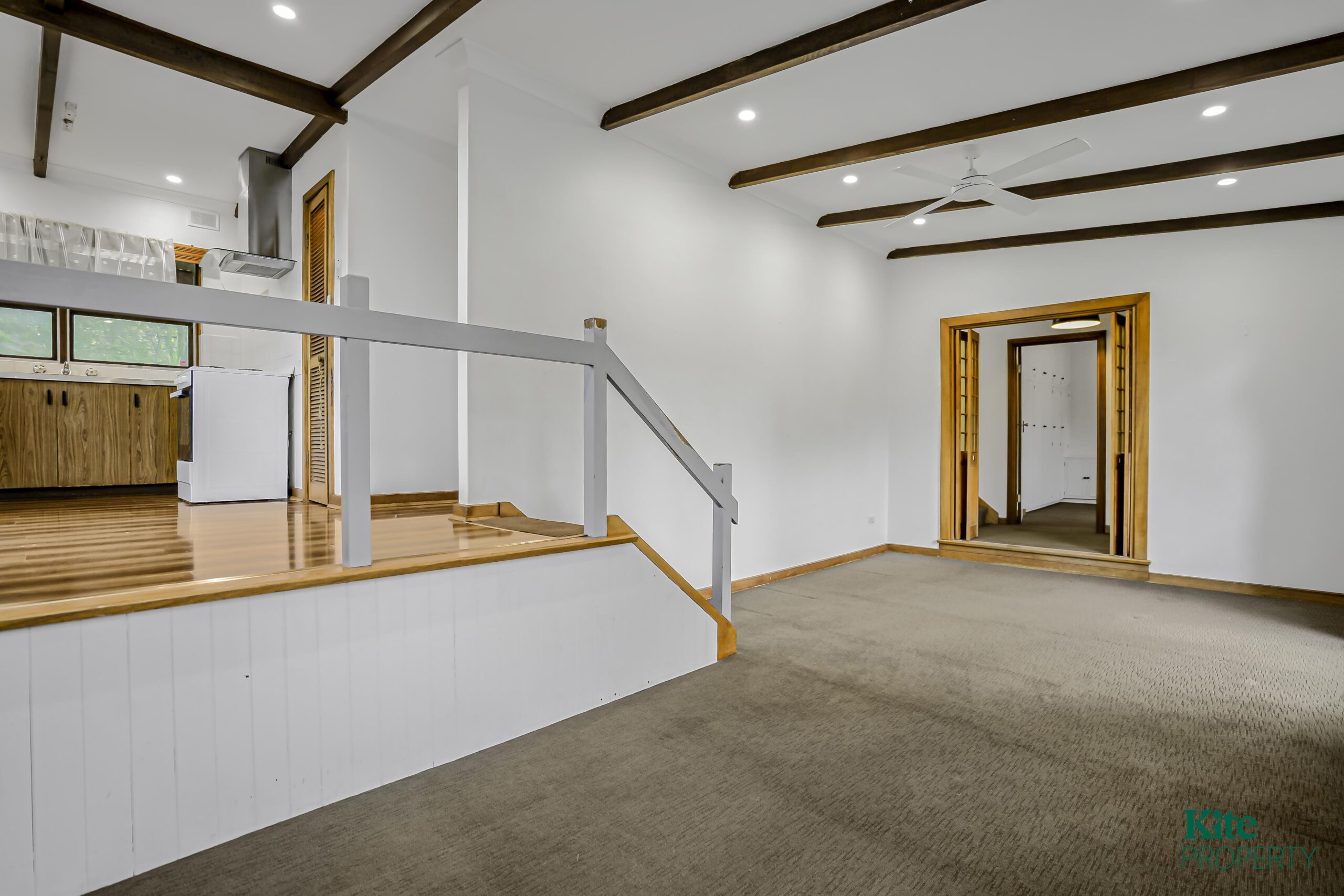Inside, you'll find a unique split-level layout featuring a raised kitchen and dining area, overlooking the living space. Plenty of large windows throughout the home, letting in lots of natural light.