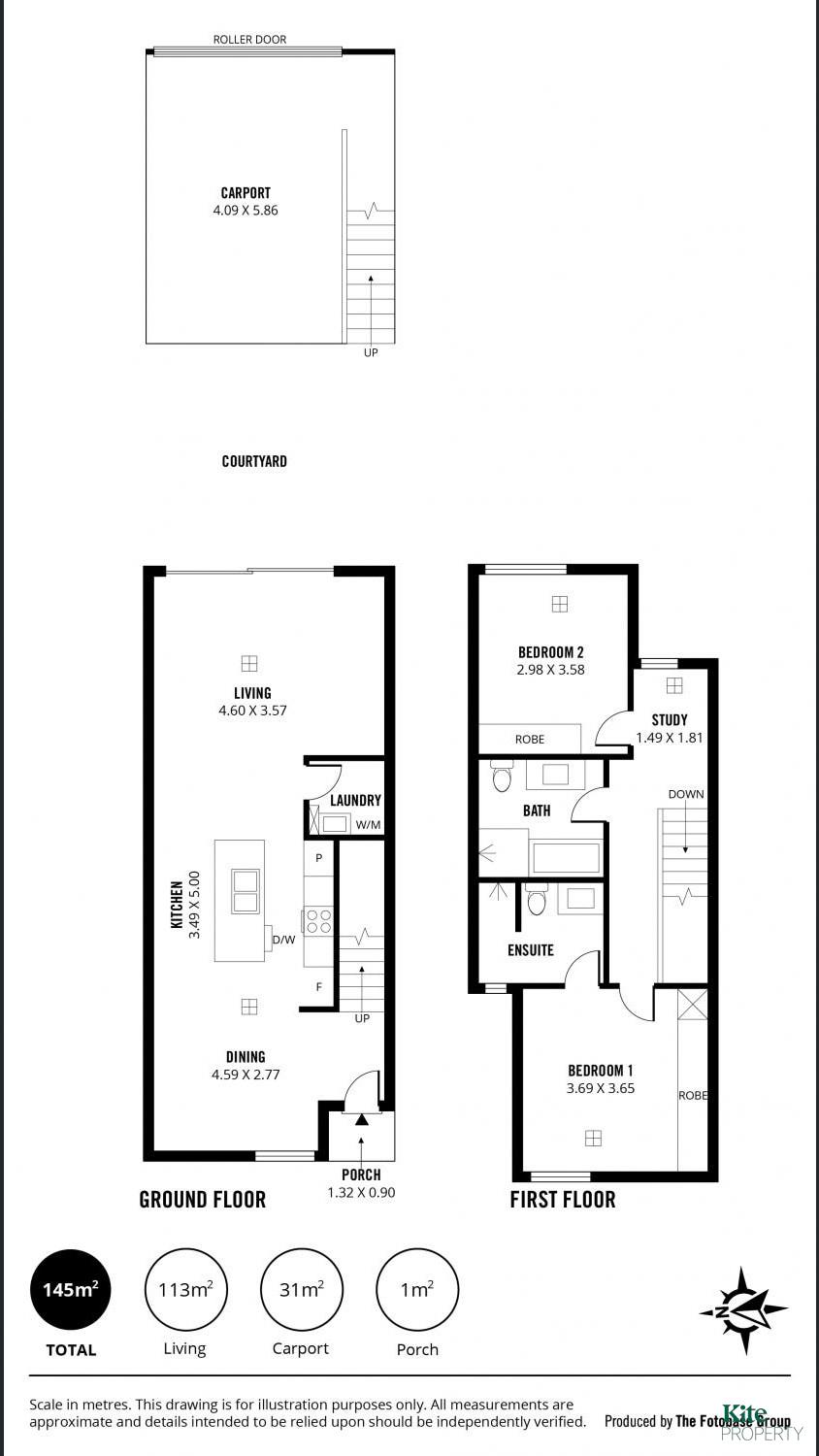 Additional features include a separate ground-floor laundry and a secure single-carport with rear laneway access.